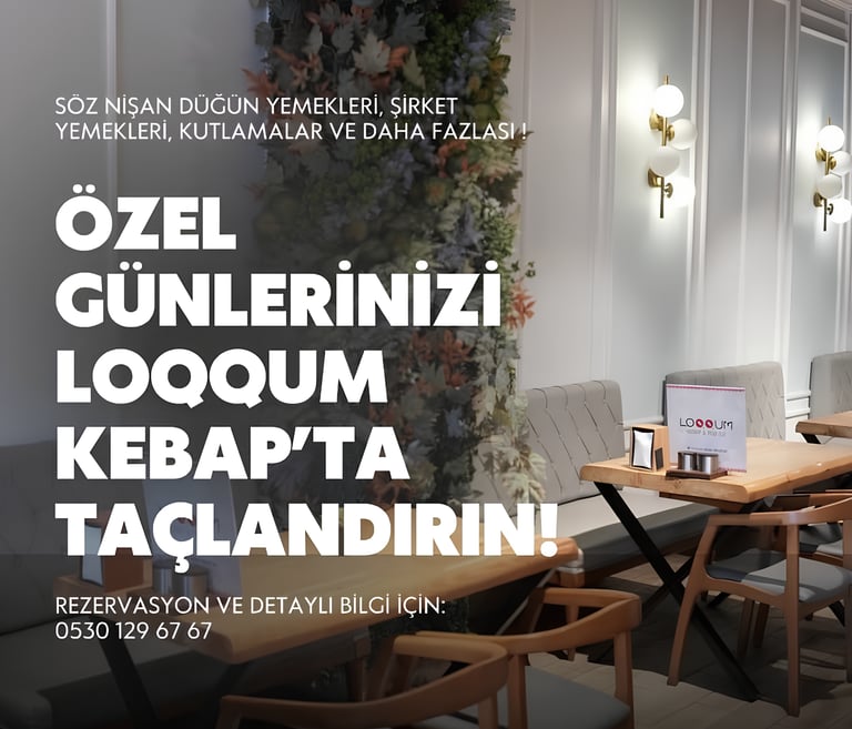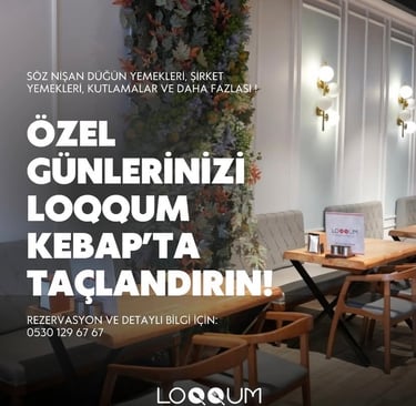 Loqqum Catering, geleneksel kebap lezzetlerini modern bir anlayışla sunan bir lokanta olmanın yanı sıra, premium ev yemekleriyle kurumsal catering hizmetleri de vermektedir. Misafirlerimize hijyen ve kalite standartlarında hazırlanan menüler sunarken, ister günlük bir kebap ziyafeti ister özel davetler ve kurumsal organizasyonlar olsun, her ihtiyaca uygun çözümler üretiyoruz.